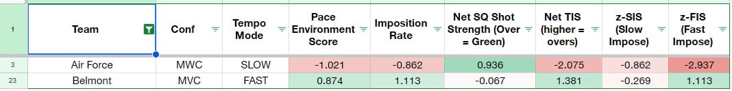 This game is the essence of why I “invented” the TIS this offseason. Air Force is widely perceived as a super-snail that grinds pace to a halt. That perception is incorrect. AFA plays slow, but their slow pace has no effect on the opponent. In fact, AFA’s -0.862 SIS (slow impose) grade was bottom 75 nationally and dead-last in the MWC (they were worse at imposing a slow game than freakin’ FRESNO, who was among the fastest teams in the country).