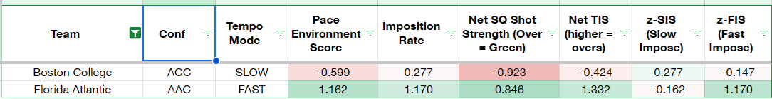 If this game was played last season, FAU would’ve had a distinct advantage in its ability to speed up BC versus BC’s desire to slow the game down. The arrival of Chase Forte from South Dakota has perhaps changed the calculus, however, with BC now able to push pace after Forte was the catalyst for a top five pace team at South Dakota last year. FAU is a modern, rim-and-3 oriented offense — and BC’s offense under Earl Grant has generally been rather antiquated — but Grant’s roster construction suggests a potential philosophical shift with all-gas-no-brakes Forte surrounded by drivers and shooters.